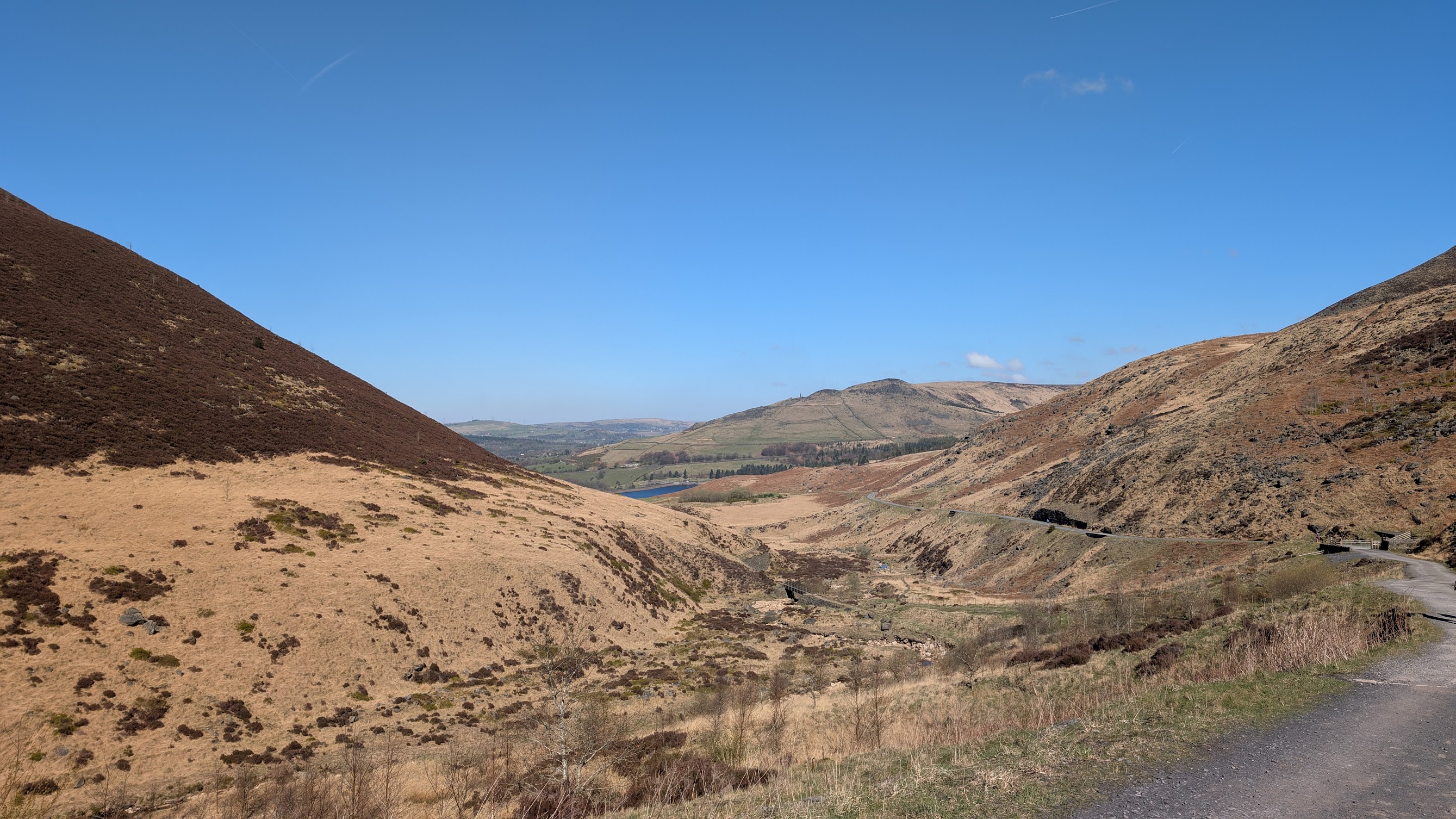 The replacement coach drops you off at Greenfield station. It’s roughly a five-kilometre walk to the reservoir from the station. Partway along, you come to a fork in the road marked Private – No Public Right of Way so google maps suggested a rather dubious detour around it. On my way back, I discovered that the private path is actually open to walkers.