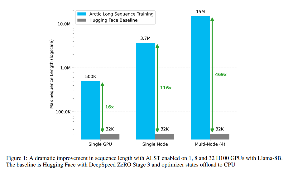 Using these techniques along with various PyTorch optimisations such as activation checkpointing, fused kernels, ALST demonstrates training of models with multi-million sequence lengths.