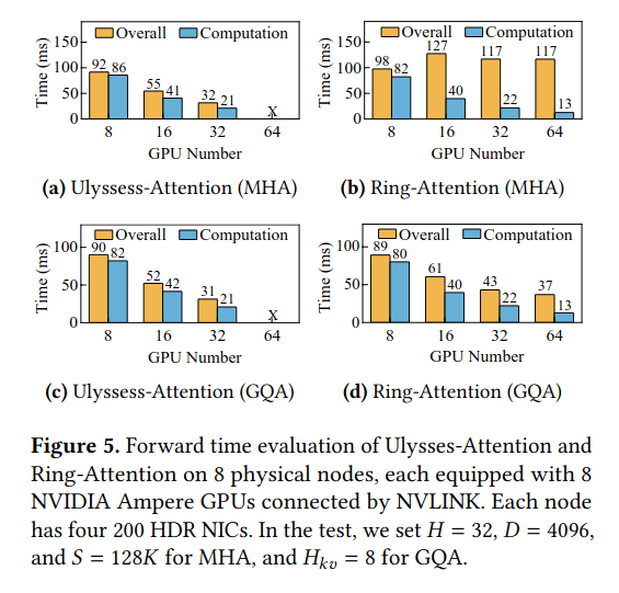 The drawback of uneven load distribution across devices while computing the attention for causal transformers is addressed DistFlashAttn and Striped Attention. Ring attention reduces the cost of gathering KV, but KV still scales with the number of heads. This leads us to Ulysses, which shards attention heads themselves.
