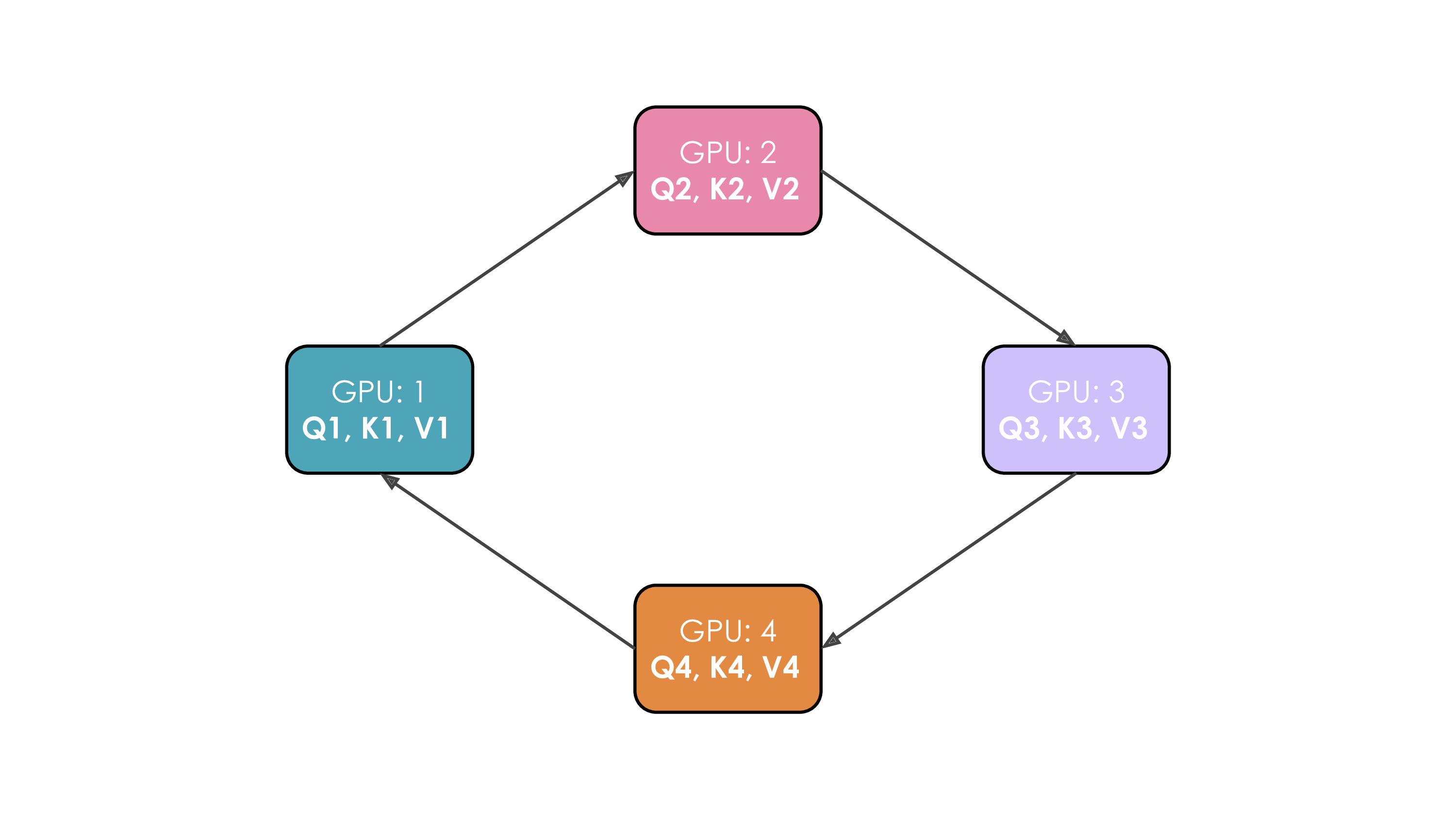 - All GPUs exchange K/V slices so every device has the full K/V needed for its queries