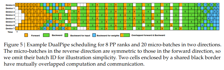The DeepSeek v3 paper introduced DualPipe, a technique that overlaps forward and backward computation–communication phases to further reduce pipeline bubbles.